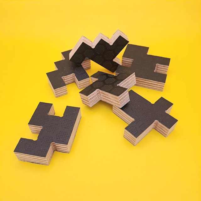 Ce puzzle 3D est fabriqué à partir de chutes de contre-plaqué filmé fournies par la société Assynt qui aménage des Vans sur Rochefort Océan.